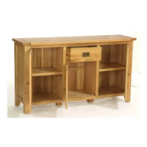 Široká dubová skrinka pod TV s kovovou konštrukciou v priemyselnom štýle 225x40x60 cm SKU: FAC-C1