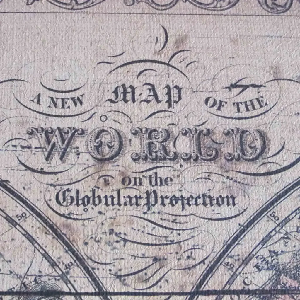 Dekorácia mapy sveta maľovaná na ľanové plátno je štýlovým doplnkom do akejkoľvek domácnosti. Dekorácia na vrecovine v podobe mapy sveta skrášli každú stenu. Dekorácia pripomína starú mapu sveta rozdelenú na dve zemské pologule.