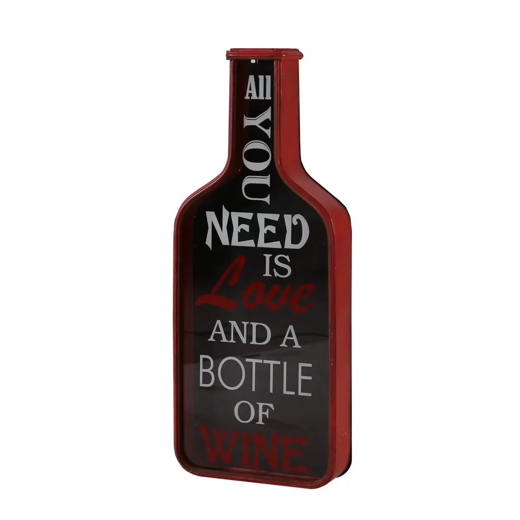 Dokonalá dekorácia na stenu, ktorá opisuje slová každého milovníka vína. Tvar tejto dekorácie úžasne dopĺňa samotný výrok, čím dodáva reálnu podobnosť produktu k vínovej fľaši.