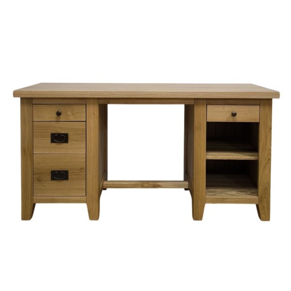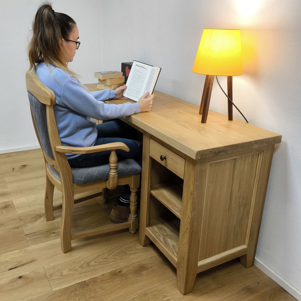 Tento pracovný stôl z dubového masívu s poctivým spracovaním bol navrhnutý pre organizované a pohodlné pracovné prostredie.