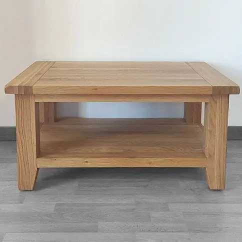 Dubový konferenčný stolík z masívu ponúka stabilnú pevnú konštrukciu a prirodzený vzhľad, ktorý vynikne v modernej aj rustikálnej obývačke. Priestranná horná doska poskytuje miesto na dekorácie či občerstvenie, zatiaľ čo spodná polička vo výške 10 cm od podlahy slúži na odkladanie časopisov, kníh alebo košíkov. Masívne dubové drevo dodáva stolíku dlhú životnosť a nadčasový charakter. Vďaka kompaktným rozmerom sa hodí aj do menších priestorov ako štýlový kávový alebo obývačkový stolík.