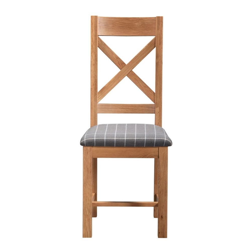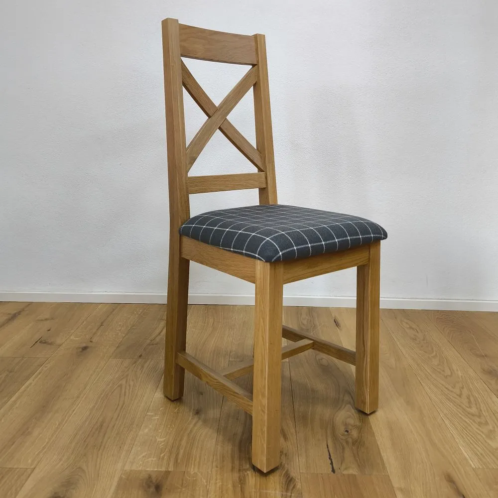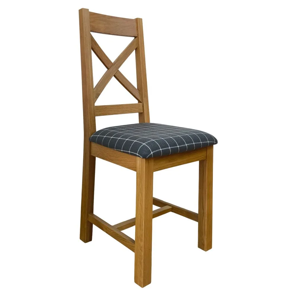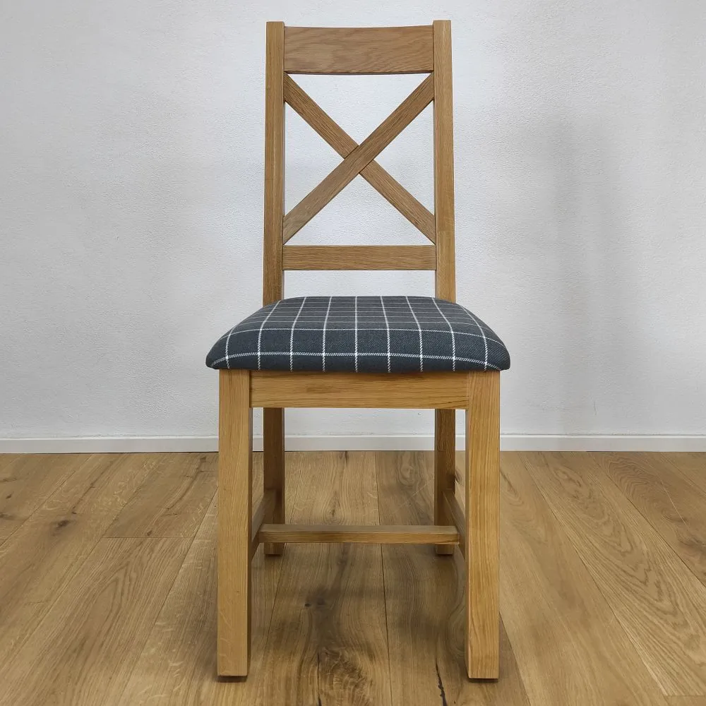 Drevená jedálenská stolička zaujme nielen svojím spracovaním, ale aj komfortom pri sedení. Sedák je čalúnený kvalitnou látkou v šedej farbe so vzorom jemnej mriežky, ktorá je decentná a ľahko kombinovateľná s inými farbami interiéru. Látkový poťah je príjemný na dotyk, priedušný a odolný voči opotrebeniu. Čalúnenie poskytuje mäkké, pohodlné sedenie, ktoré oceníte nielen pri rýchlych raňajkách, ale aj počas dlhších rodinných večerí či sviatočných posedení.