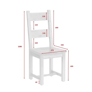 Výška sedáku je 49 cm, čo zabezpečuje optimálne pohodlie pri sedení. Dve hrubšie lamely na opierke poskytujú oporu chrbtici a zároveň dodávajú stoličke výrazný vzhľad. Robustná konštrukcia a pevné spoje zaručujú stabilitu aj pri intenzívnom používaní. Drevená stolička ponúka nielen estetiku, ale aj ergonomické vlastnosti pre komfortné každodenné stolovanie.