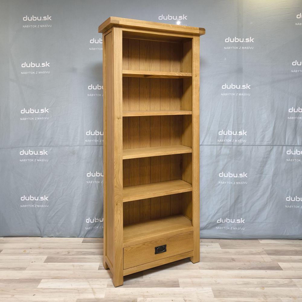 Dubová knižnica so zásuvkou je dokonalým riešením pre každého, kto hľadá elegantný a praktický regál na knihy alebo dekorácie. Vďaka prírodne morenej povrchovej úprave zapadne do rôznych štýlov interiéru – od rustikálneho až po moderný škandinávsky dizajn. Knižnica sa vyznačuje kvalitným spracovaním a robustnou konštrukciou, vďaka čomu ponúka dlhú životnosť a stabilitu.