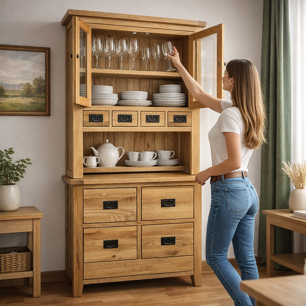 Príborníková zostava s dubovým dizajnom patrí do každej moderne i vidiecky zariadenej domácnosti. Dubový príborník disponuje dostatkom praktického úložného priestoru či už vo veľkých alebo malých drevených zásuvkách.