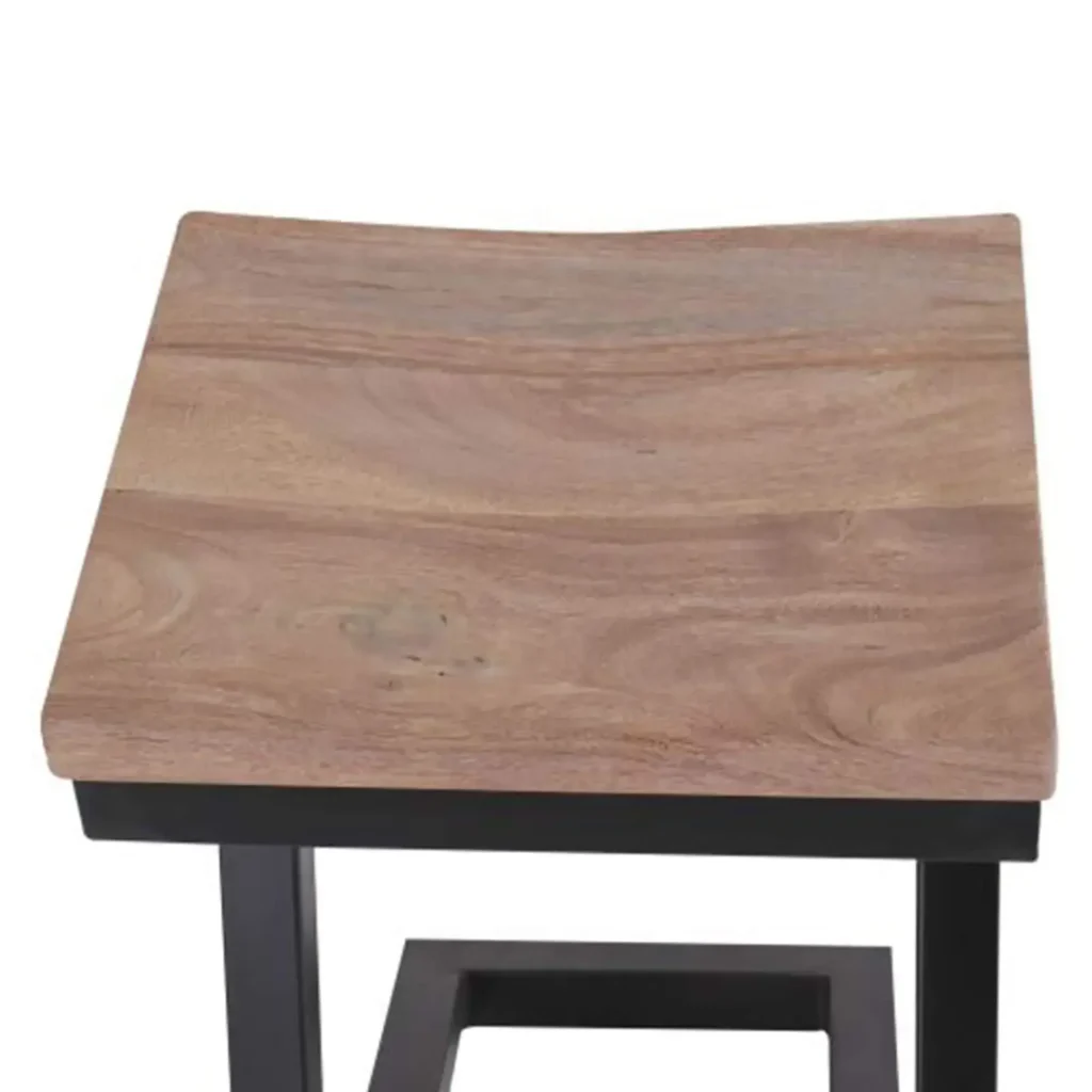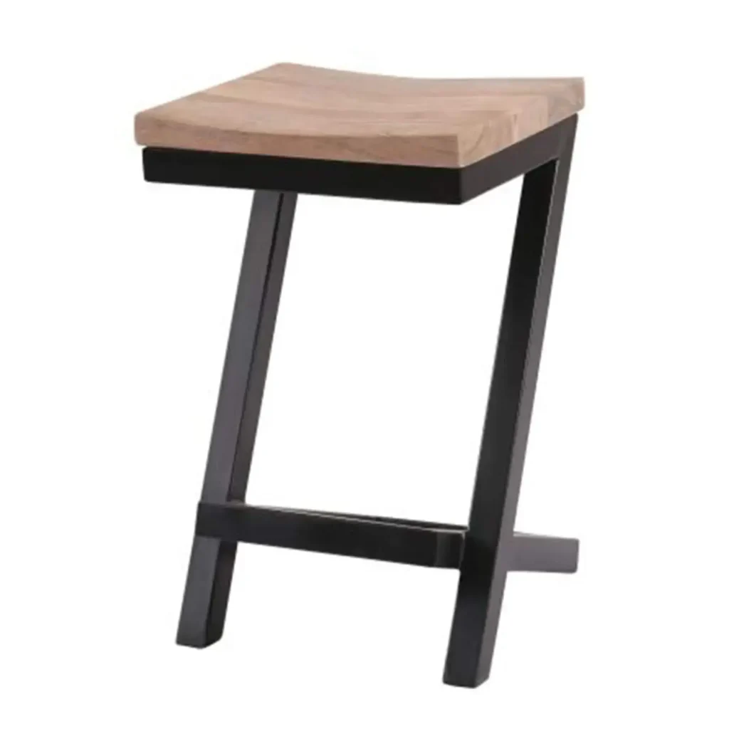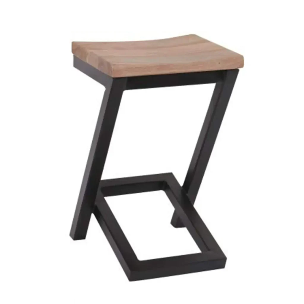 Kovová taburetka pre industriálny štýl s masívnym anatomicky tvarovaným dreveným sedákom bez operadla. Neobvyklý a zároveň moderný dizajn výrobku odslúži dlhé roky vďaka robustnej oceľovej konštrukcii a odolnému čiernemu náteru. Výška kovovej barovej taburetky je dômyselne o niečo nižšia ako doska na bežnom jedálenskom stole či doska na kuchynskom ostrovčeku alebo tiež zapasujú pod barový pult.