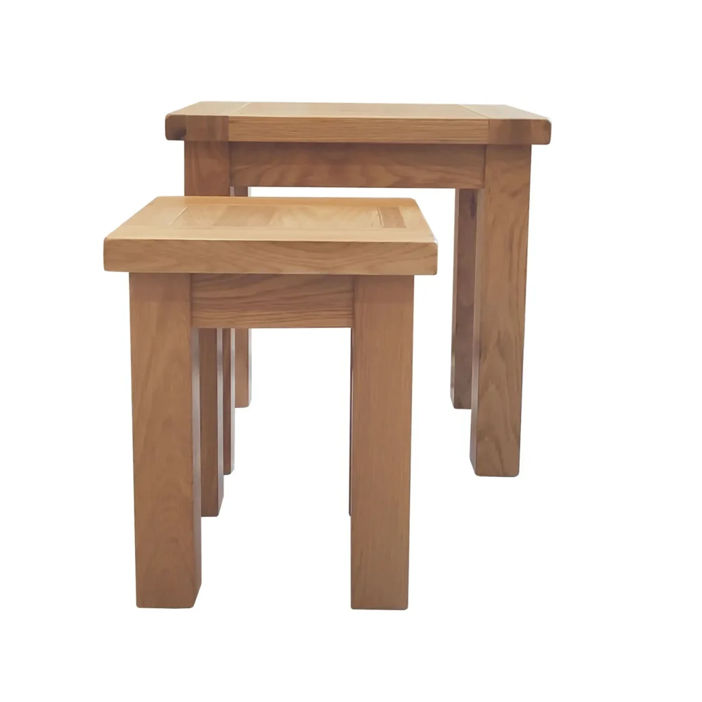 Utešený set servírovacích stolíkov prakticky poslúži aj príjemne dotvorí atmosféru klasicky i netradičnejšie zariadeného interiéru. Výzor stolíkov je výsledkom tradičného nábytkárstva zameraného na masívne drevo, ktoré vyzdvihuje základné vlastnosti masívu ako pevnosť, dlhovekosť a odolnosť. Týmto vlastnostiam prispôsobujú aj dizajn, v ktorom preferujú nadčasovosť, štýlovú neutralitu a schopnosť vyhovieť viacerým typom zariadenia interiéru.