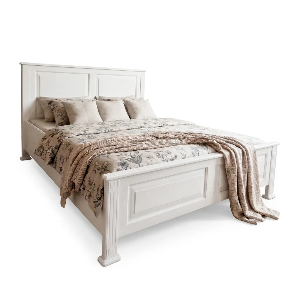 Biela masívna manželská posteľ v provensálskom štýle