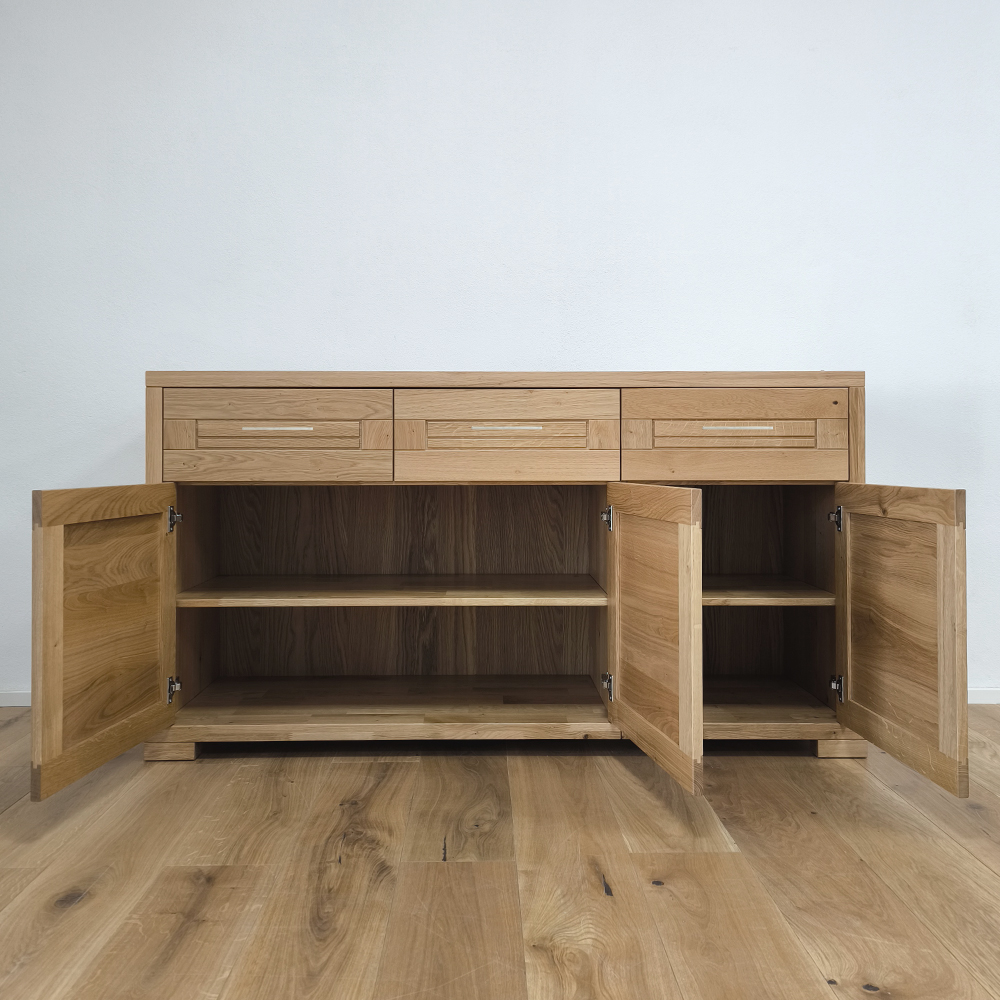 Použité dubové drevo zaručuje výnimočnú odolnosť voči poškodeniu a dlhú životnosť, čo robí z tejto komody z masívu investíciu na dlhé roky. Masívna konštrukcia zabezpečuje pevnosť a stabilitu, pričom precízne opracované plochy a frézované detaily pôsobia elegantne a nadčasovo. Povrchová úprava zachováva prirodzený vzhľad dreva a zároveň ho chráni pred bežným opotrebením. Tento typ nábytku z masívu je ideálny pre tých, ktorí preferujú prírodné materiály a remeselné spracovanie.