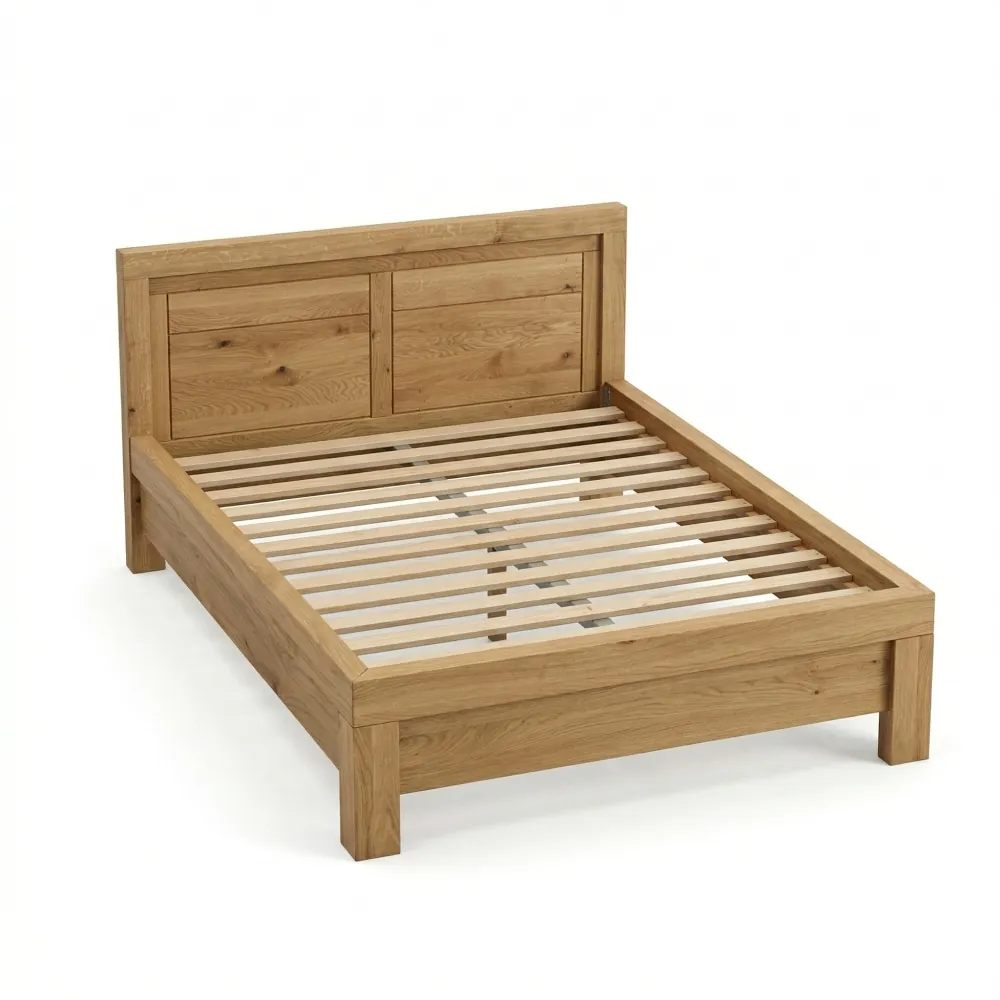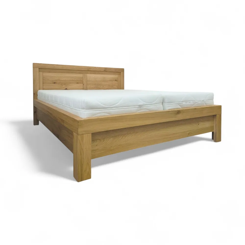 Moderná manželská posteľ z masívu je vyrobená z dubového masívu najvyššej kvality. Prírodný a moderný vzhľad dodáva priebežné dubové rezivo s výskytom miernych rustikálnych kazov. Poctivá dvojlôžková dubová manželská posteľ je vyrobená neomylnou CNC technológiou. Drevená manželská posteľ – dvojlôžko sa dodáva v demonte, v štyroch šírkach matracu 140, 160, 180 a 200 cm.