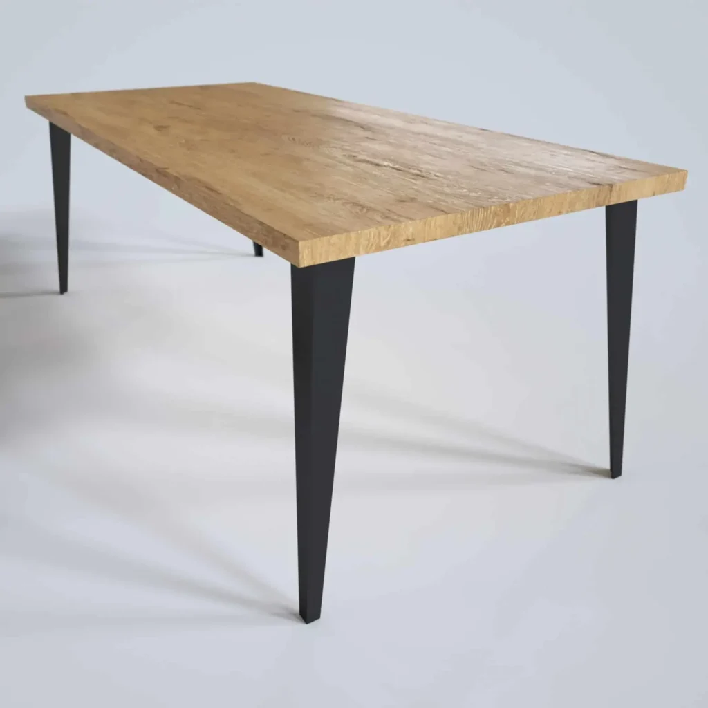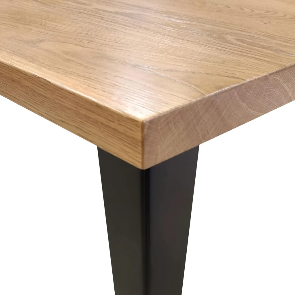 Moderný, jedálenský, stôl pre 10 osôb, ktorý je vhodný do každej moderne zariadenej jedálne. Jeho jemne kartáčovaný povrch je upravený použitím tvrdého, voskového, oleja značky Osmo, ktorý vyživuje dubové drevo a chráni stôl z masívu pred vplyvmi z vonkajšieho okolia. Olej, ktorý zachováva hodnotu prírodného dreva a je hygienicky nezávadný. Jedálenský stôl je dodávaný v demontovanom stave, čím sú jeho kovové nohy, striekané práškovou farbou, polohovatelné.