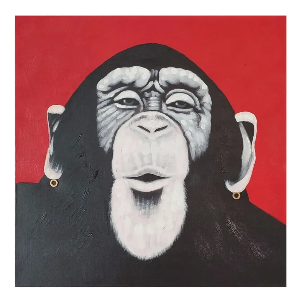 Obraz maľovaný na plátno 830x55x830 Bozk od šimpanza