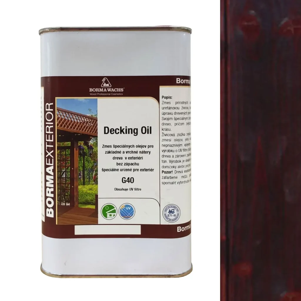 Decking Oil je mikro-porézny náter na drevo, ktorý ho necháva dýchať. Terasový olej odpudzuje vodu, nezanecháva po nej stopy, nepraská a nelúpe sa. Olej je vhodné aplikovať na drevené obloženie fasád, drevené terasy, pergoly, ploty, zruby a drevenice.