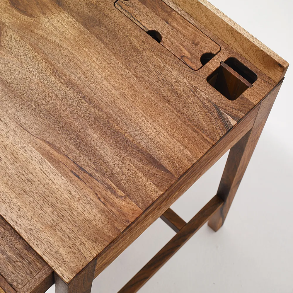 Veľký pracovný stôl ponúka dostatok priestoru na notebook, dokumenty aj kancelárske doplnky. Masívny pracovný stôl z prírodného dreva si vďaka pevnej štruktúre zachováva stabilitu aj po dlhých rokoch používania. Drevený pracovný stôl je preto dlhodobou voľbou pre náročných používateľov.
