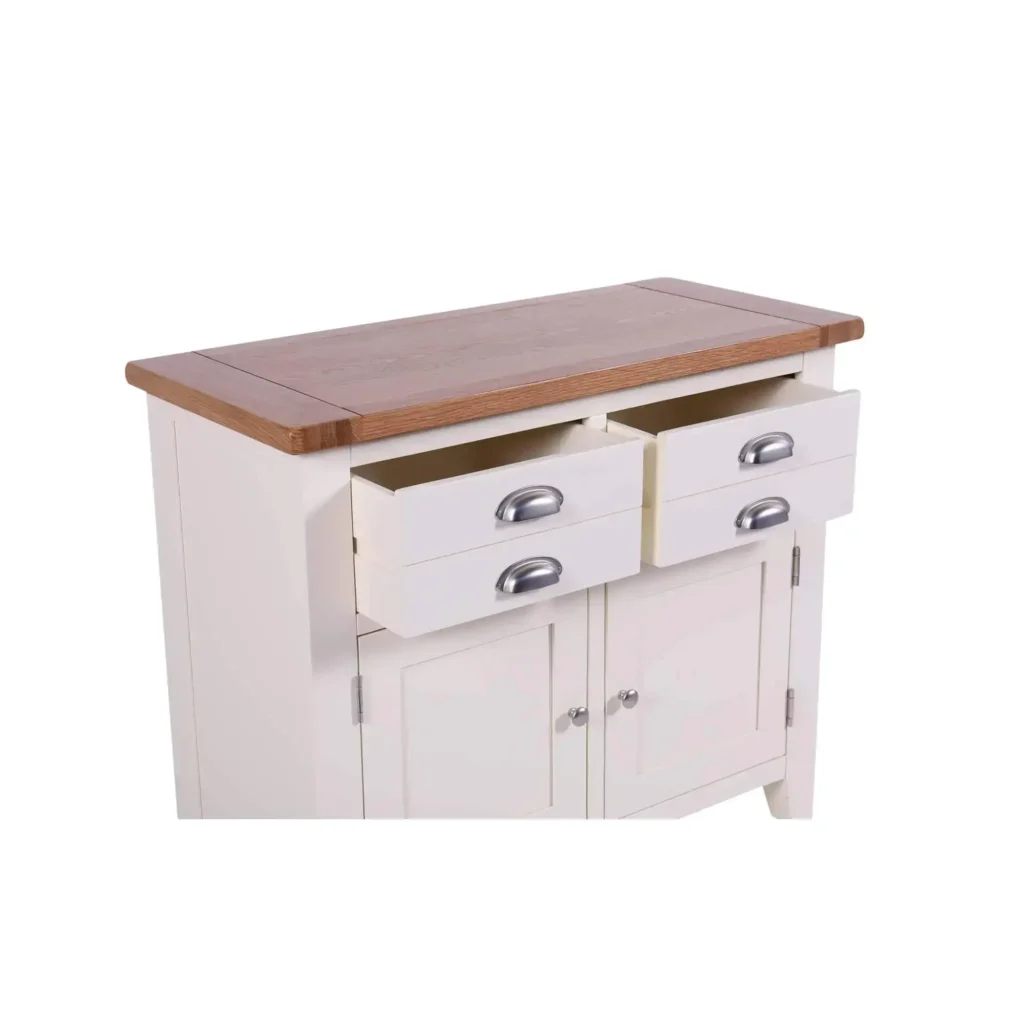 Biela komoda so zásuvkami a dvierkami z masívu rozjasní priestor kuchyne, jedálne i obývačky. Zaradiť sa dá najmä medzi komody do kuchyne, kde svojou jemnou pastelovou farbou vytvorí atmosféru vidieka alebo vhodnou kombináciou nastolí provensálsky či vintage štýl.