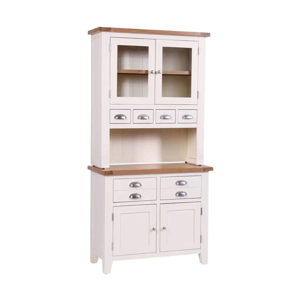 Vintage komoda z dreva je upravená špeciálnymi olejmi a voskmi na prírodnej báze. Farbené časti komody z masívu sú striekané niekoľkými vrstvami hygienicky nezávadnej viskóznej farby, ktorá jej dáva dodatočnú ochranu. V spojení s vitrínou sa z nej stane elegantná kuchynská komoda, ktorá bude dominantou každej kuchyne i jedálne.