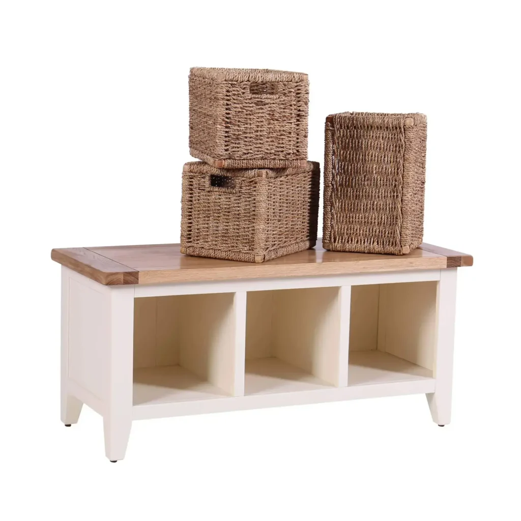 Biela komoda s košíkmi z ratanu svojím originálnym prevedením osvieži priestory obývacej izby aj chodby. Je vhodná elegantná tv skrinka s košíkmi do obývačky, kde bude ladiť dokonca k štýlom bývania ako shabby chic, vintage, retro a nezabudne ani na vidiecky či provensálsky štýl. Biely botník zažiari v predsieni, pričom ratanové košíky môžu mať rovnaký, ale vkusnejší účel ako polica na topánky. Rovnako sa biela skrinka vďaka odolnému a trvácnemu masívnemu drevu bez problémov využije i ako biela lavica na sedenie.
