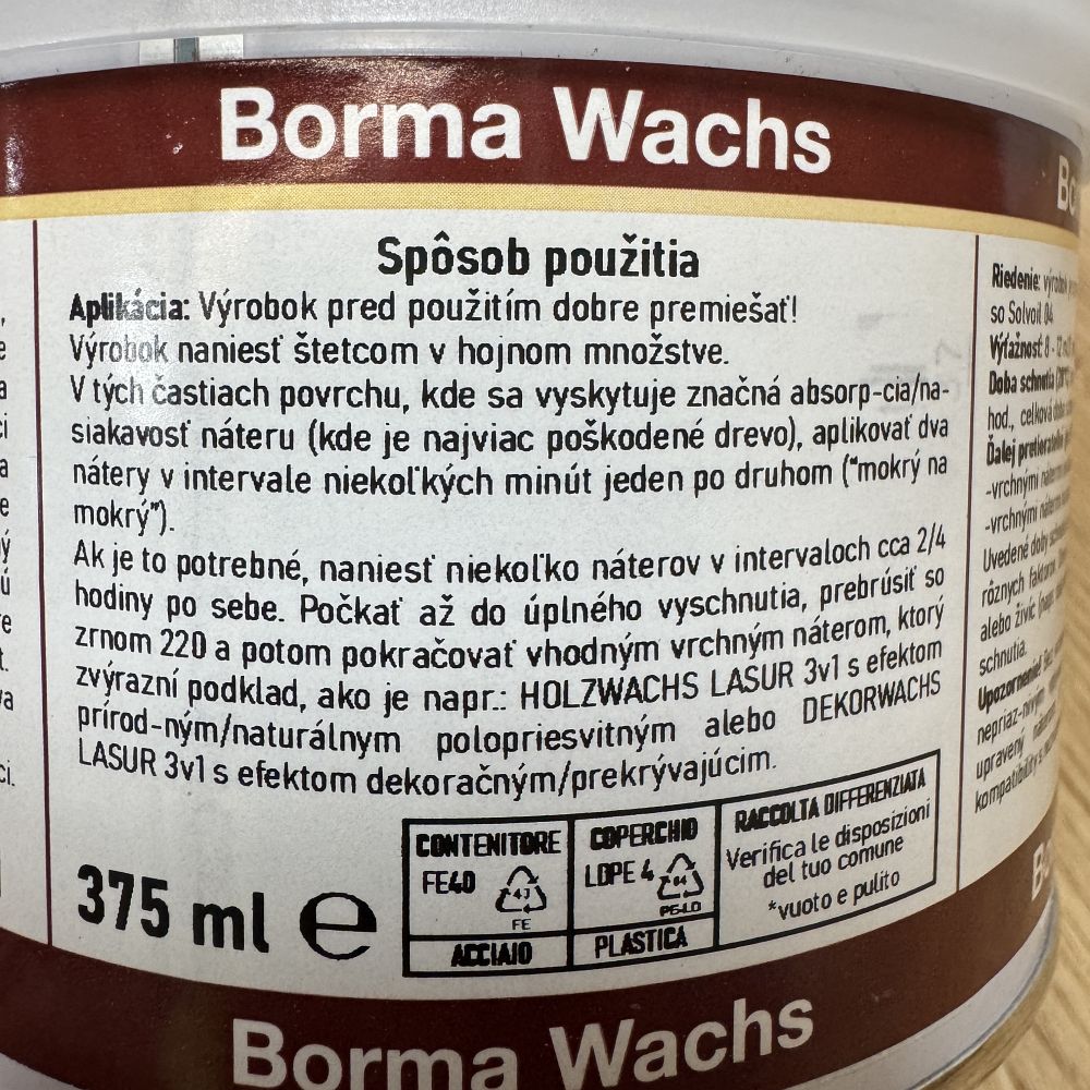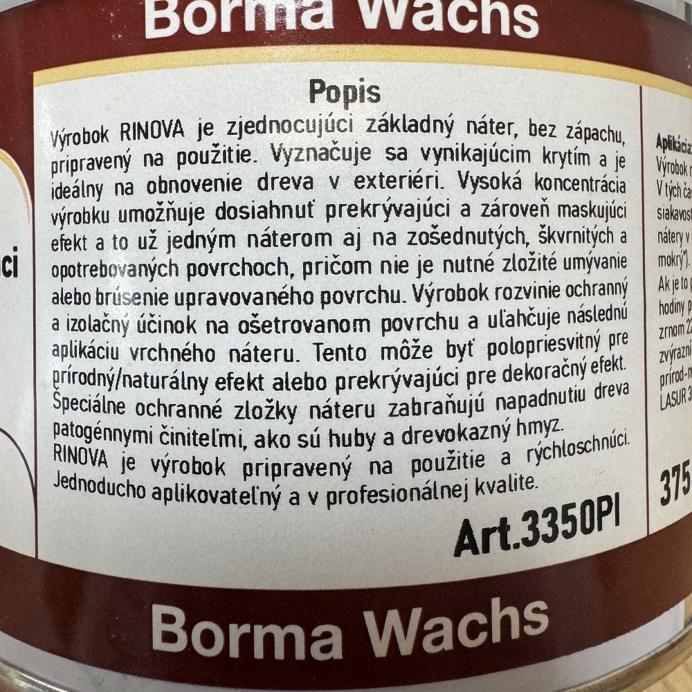 Borma Wachs Rinova – obnovujúci a zjednocujúci základný náter na drevo (odtieň Borovica/prírodné 05)