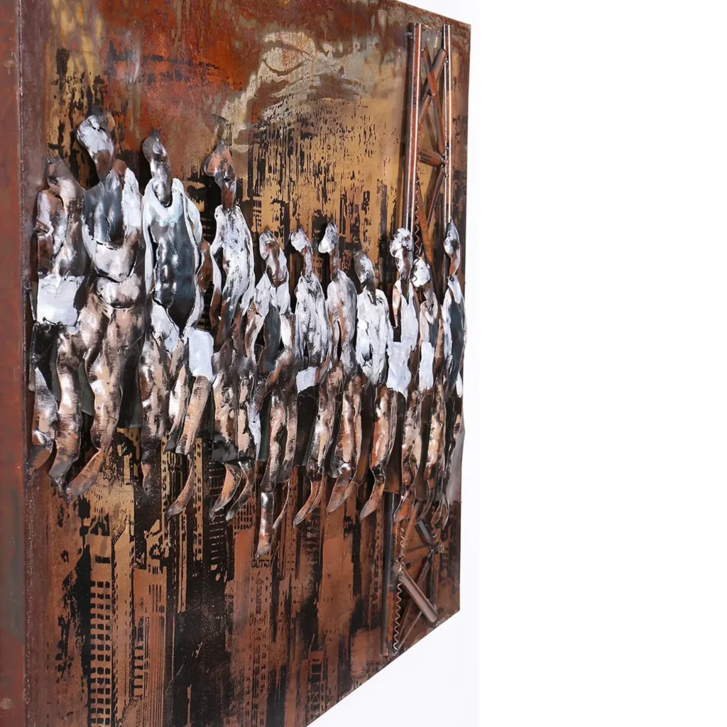 Ručne zváraný a maľovaný obraz pracovníkov, ktorí si vychutnávajú obed na vrchole mrakodrapu. Jedným z pracovníkov vyobrazených na kovovom obraze je Slovák z Vyšného Slávkova. K jedinečnosti tohto obrazu zároveň prispieva jemný 3D efekt.