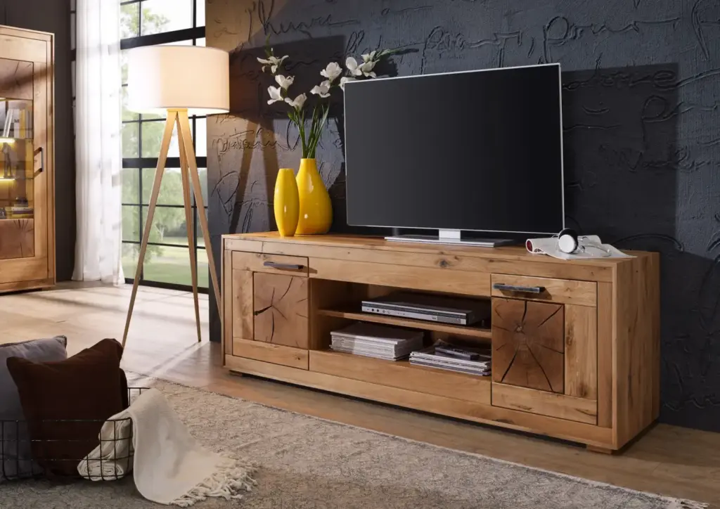Masívna drevená skrinka pod TV so šírkou 2 metre je nielen praktickým, ale hlavne štýlovým TV nábytkom z masívu do veľkej obývačky. Široká TV skrinka z dubového dreva je vyrobená z kvalitného rustikálne reziva. Veľké TV skrinka z masívu ponúka dlhodobo vysokú odolnosť a zdobí ju prirodzený vzhľad, ktorý drevo vyžaruje pri každom štýle bývania.