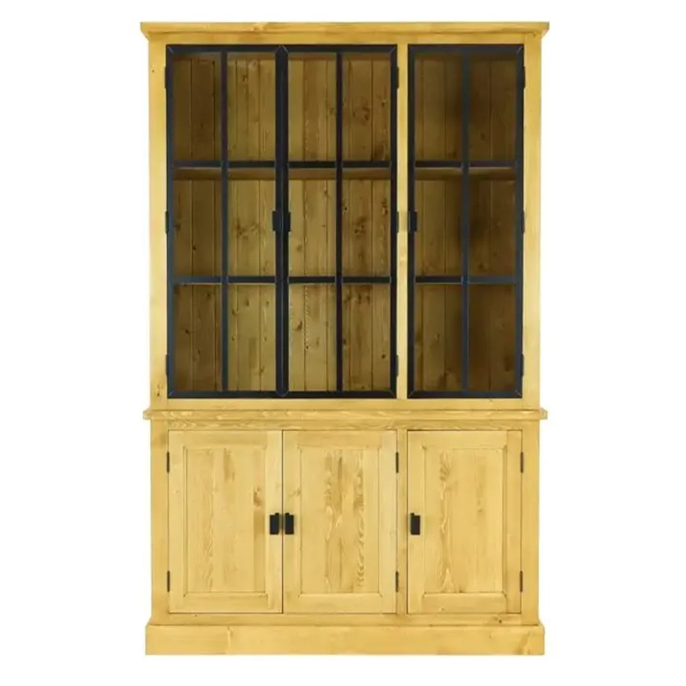 Široká vitrína s 3 drevenými a 3 presklenými dvierkami, 155x45x22 cm