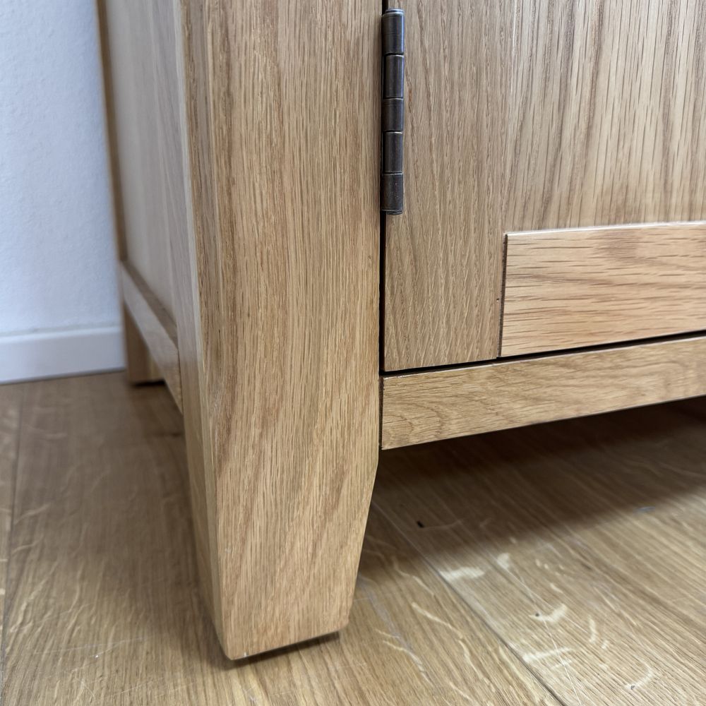 Komoda so zásuvkami a dvierkami s rozmermi 104x45x90 cm predstavuje ideálnu kombináciu praktickosti, kvality a estetického prevedenia. Komoda je vyrobená z masívneho dubového dreva, čo zaručuje vysokú odolnosť, dlhú životnosť a prirodzený vzhľad. Ide o nábytok z masívu, ktorý vyniká vďaka svojmu nadčasovému dizajnu a remeselnému spracovaniu. Dubový materiál je známy svojou tvrdosťou a stabilitou, preto je táto drevená komoda vhodná aj na každodenné používanie v domácnosti. Transparentná povrchová úprava zachováva prirodzenú farbu a štruktúru dreva, čím dodáva nábytku autentický charakter.