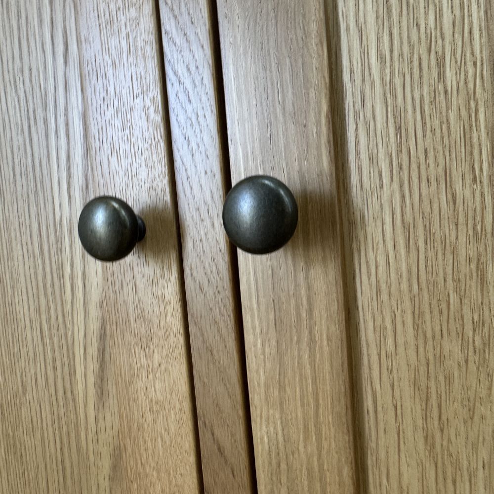 Drevená komoda je vybavená kovovými úchytmi v staromosadznej povrchovej úprave, ktoré dotvárajú jej elegantný vzhľad a dodávajú jej nádych starosvetskej elegancie. Tieto detaily zvýrazňujú kvalitné remeselné spracovanie a podčiarkujú celkový štýl nábytku. Robustné pánty a stabilná konštrukcia prispievajú k dlhej životnosti a odolnosti aj pri intenzívnom používaní.