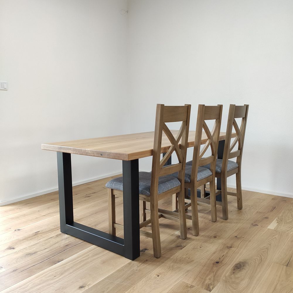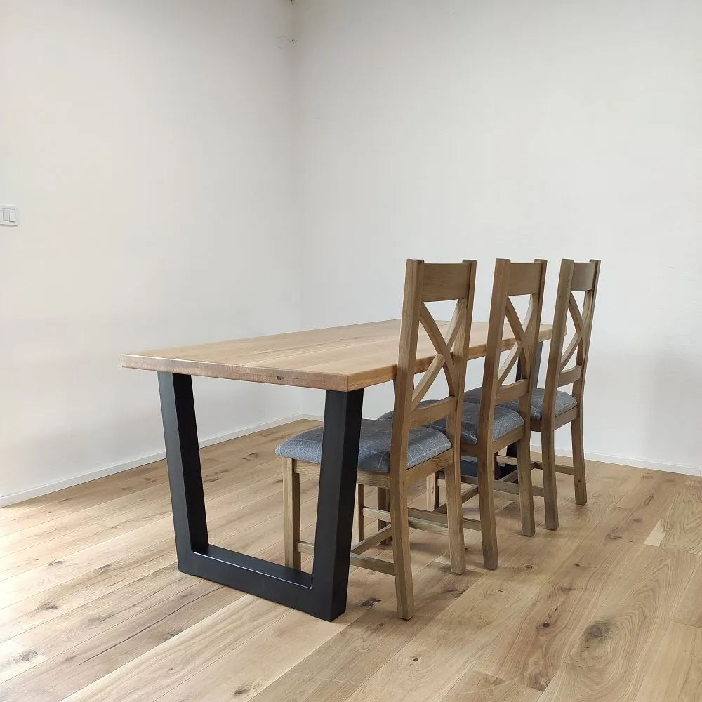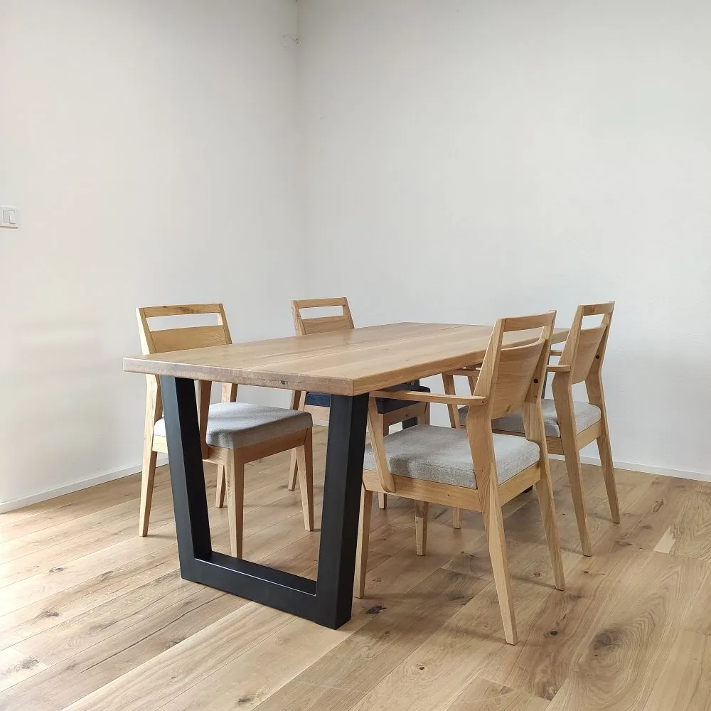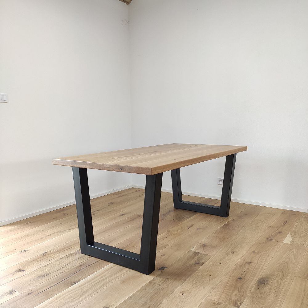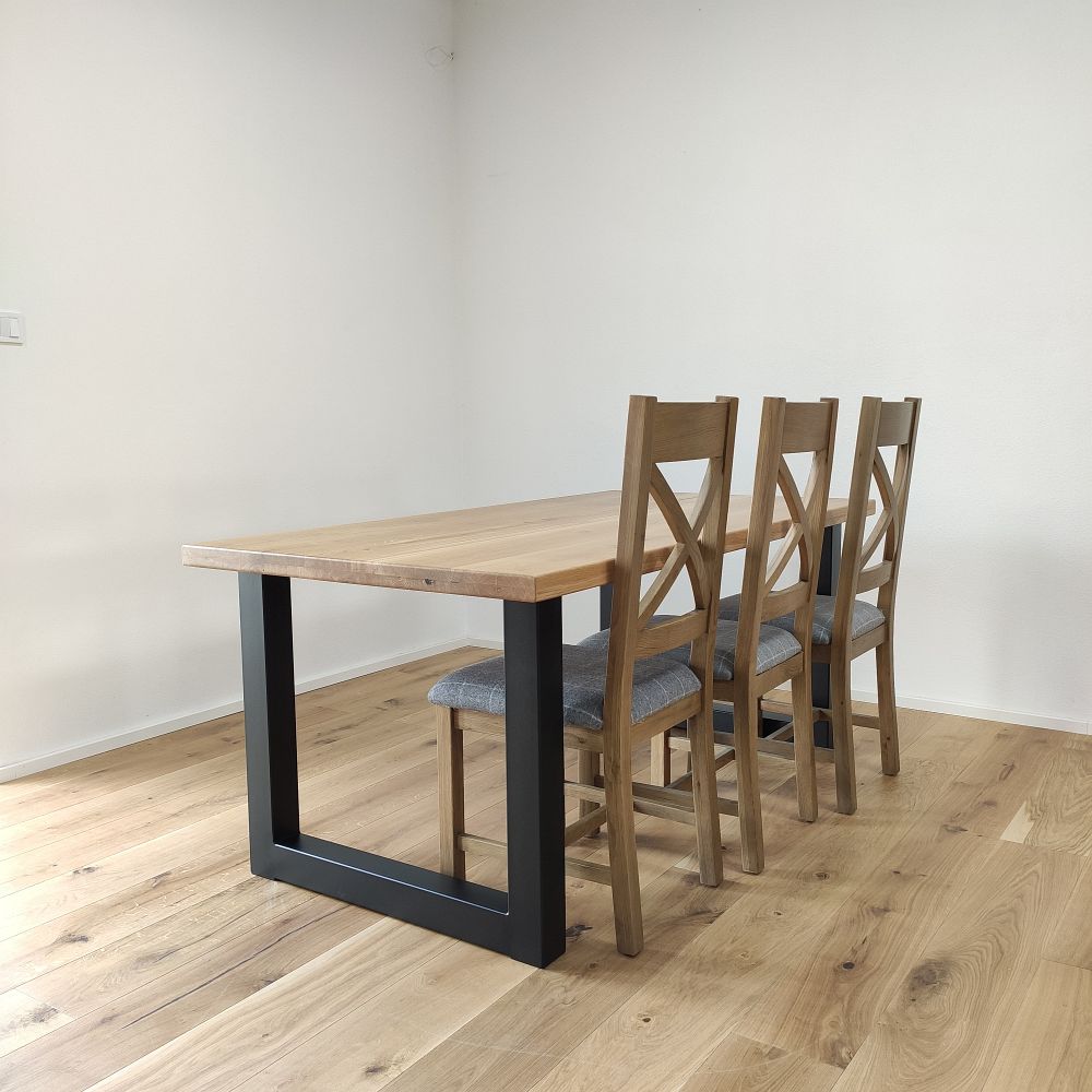 Každá dubová doska (masív) je vyrobená zo starostlivo vyberaného dreva so zachovaním prirodzenej štruktúry a sukov. Štandardná šírka lamiel sa pohybuje medzi 6 až 9 cm, čo dodáva stolovej doske autentický remeselný vzhľad. Povrch je hladko opracovaný, pričom hrany ponechávame v minimalistickom prevedení – ideálne na kombináciu s industriálnymi aj rustikálnymi prvkami.