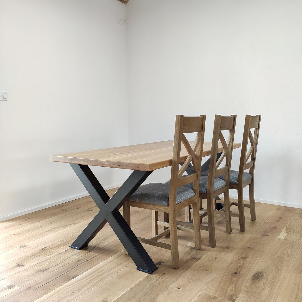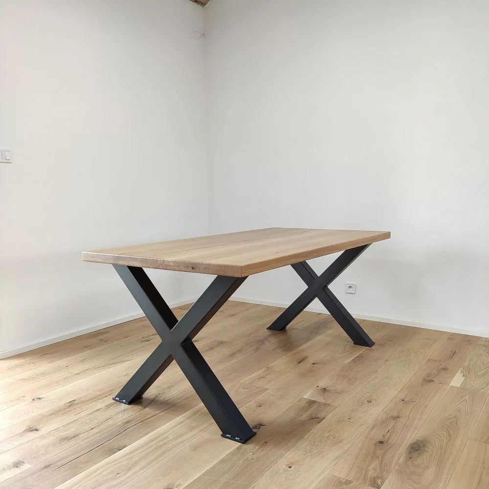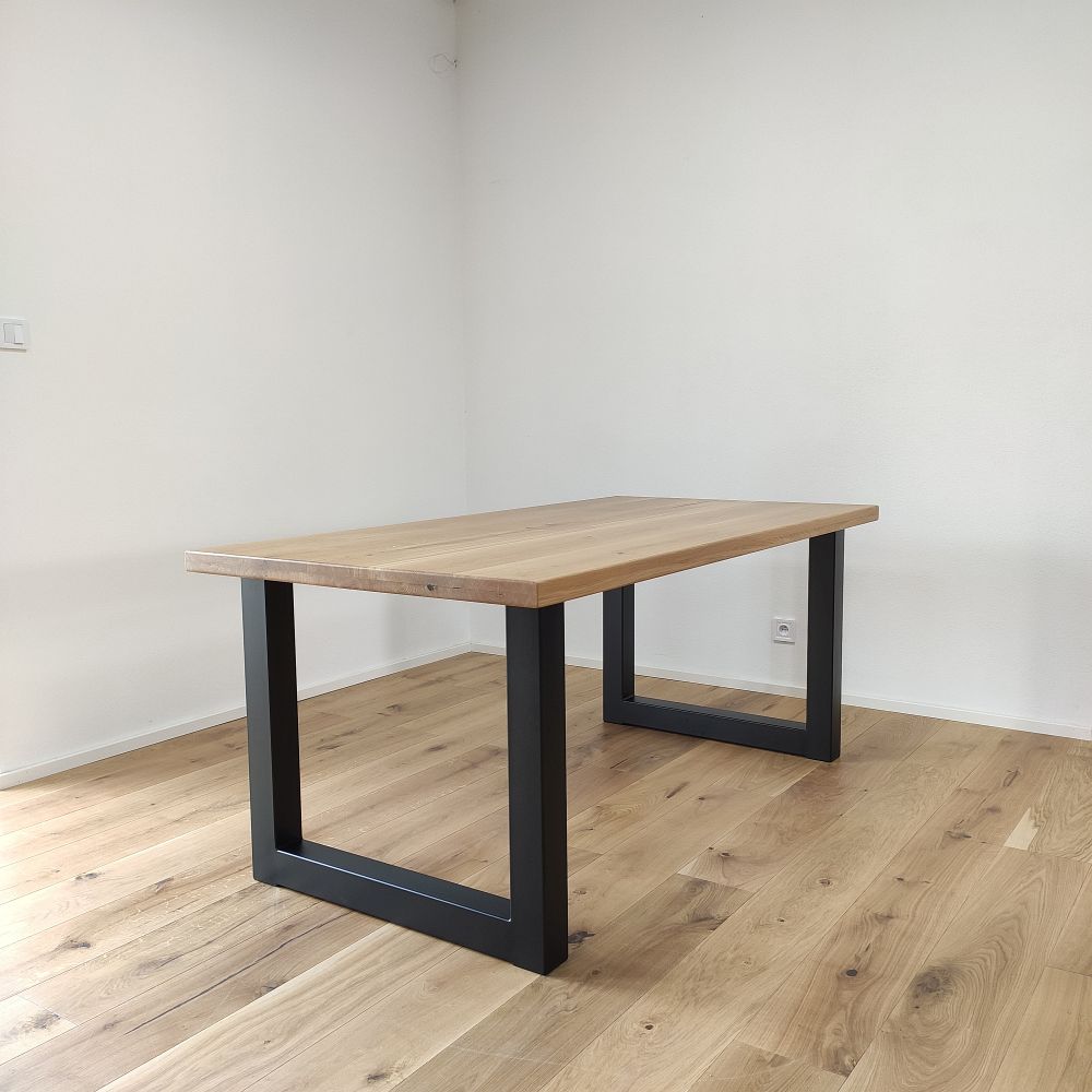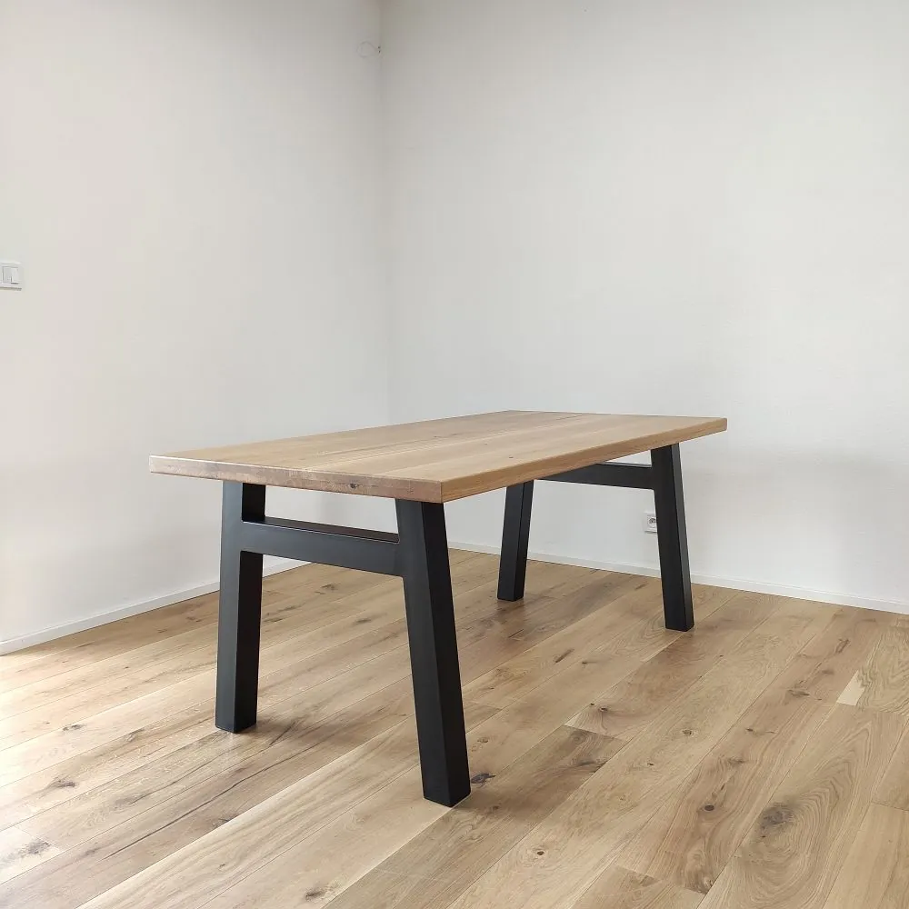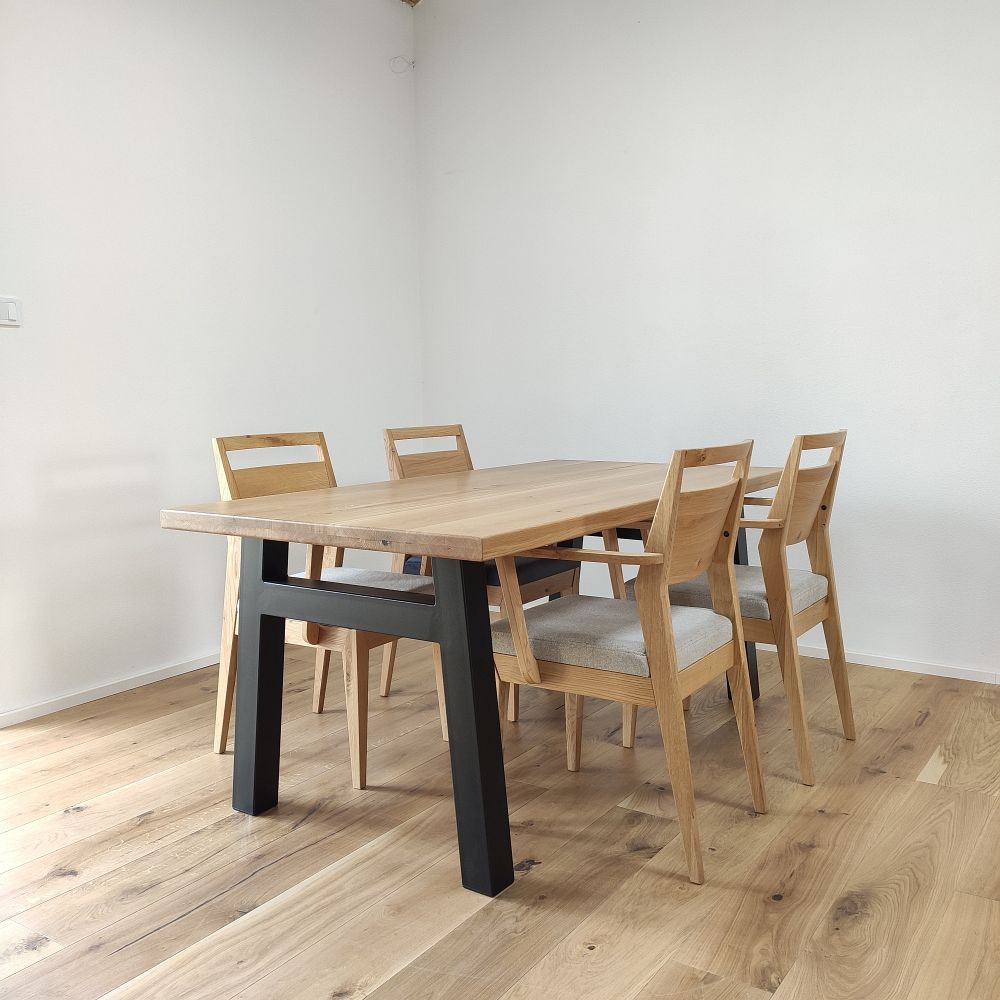 Každá dubová doska (masív) je vyrobená zo starostlivo vyberaného dreva so zachovaním prirodzenej štruktúry a sukov. Štandardná šírka lamiel sa pohybuje medzi 6 až 9 cm, čo dodáva stolovej doske autentický remeselný vzhľad. Povrch je hladko opracovaný, pričom hrany ponechávame v minimalistickom prevedení – ideálne na kombináciu s industriálnymi aj rustikálnymi prvkami.