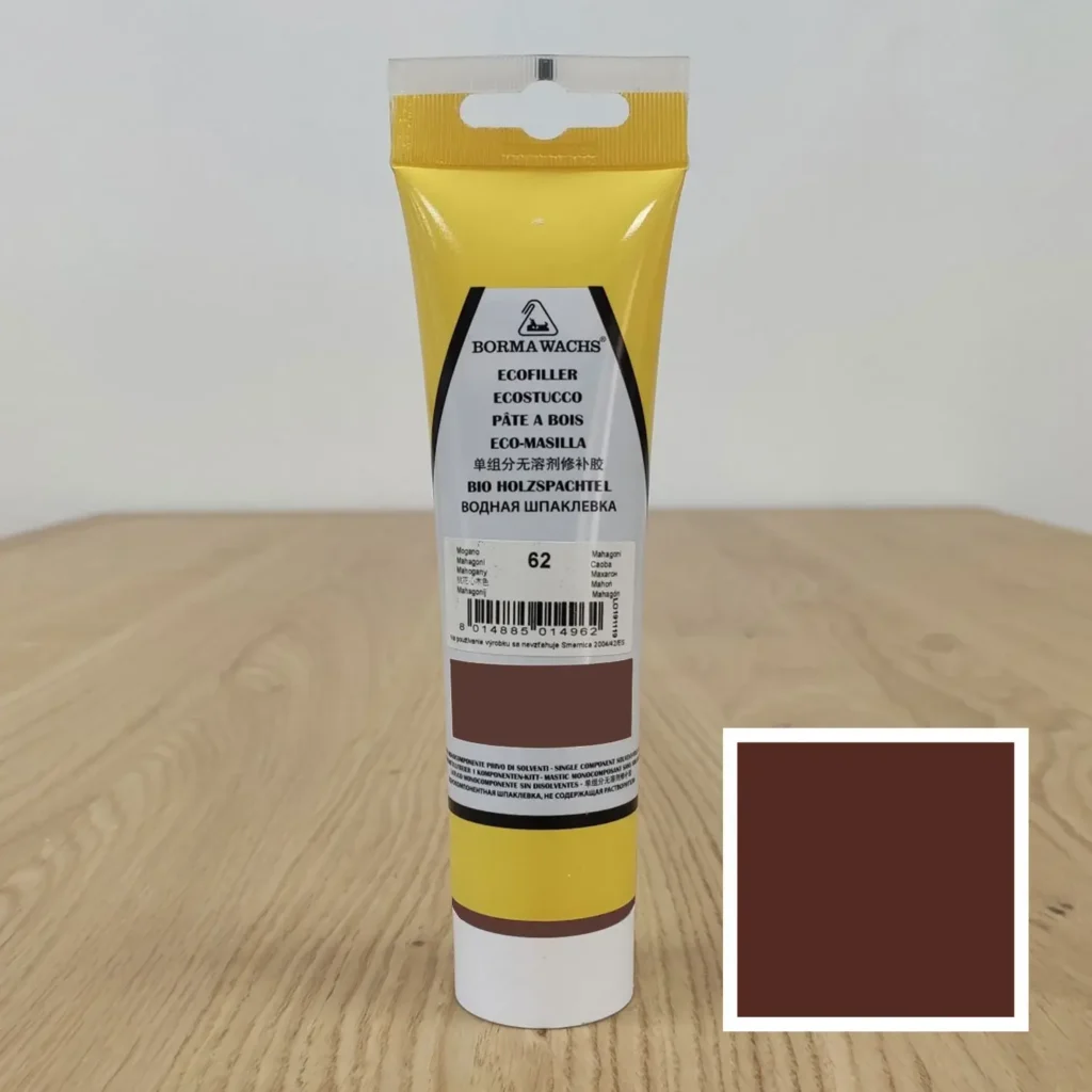 Ekologický tmel na báze vody pre opravu dreva bez zápachu s pigmentom – mahagón. Jednozložková pasta na tmelenie rôznych odtieňov dreva s jednoduchou aplikáciou. Tento typ tmelu na drevo je vhodný na ľubovoľný odtieň opravovaného dreva príp. iného podkladu.