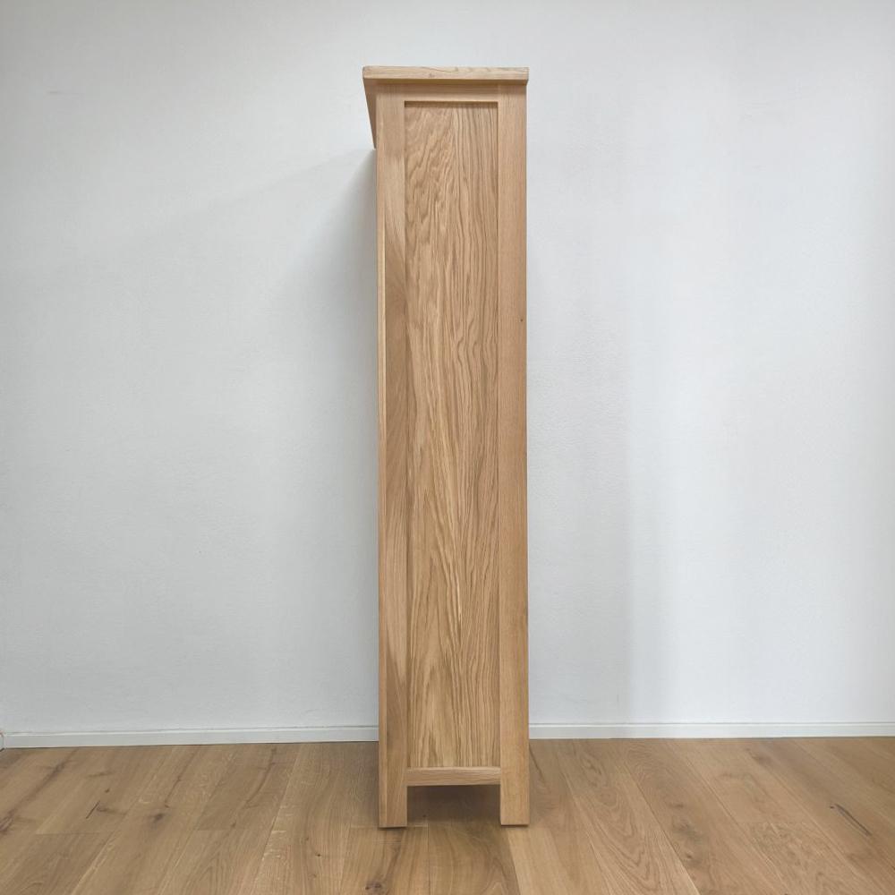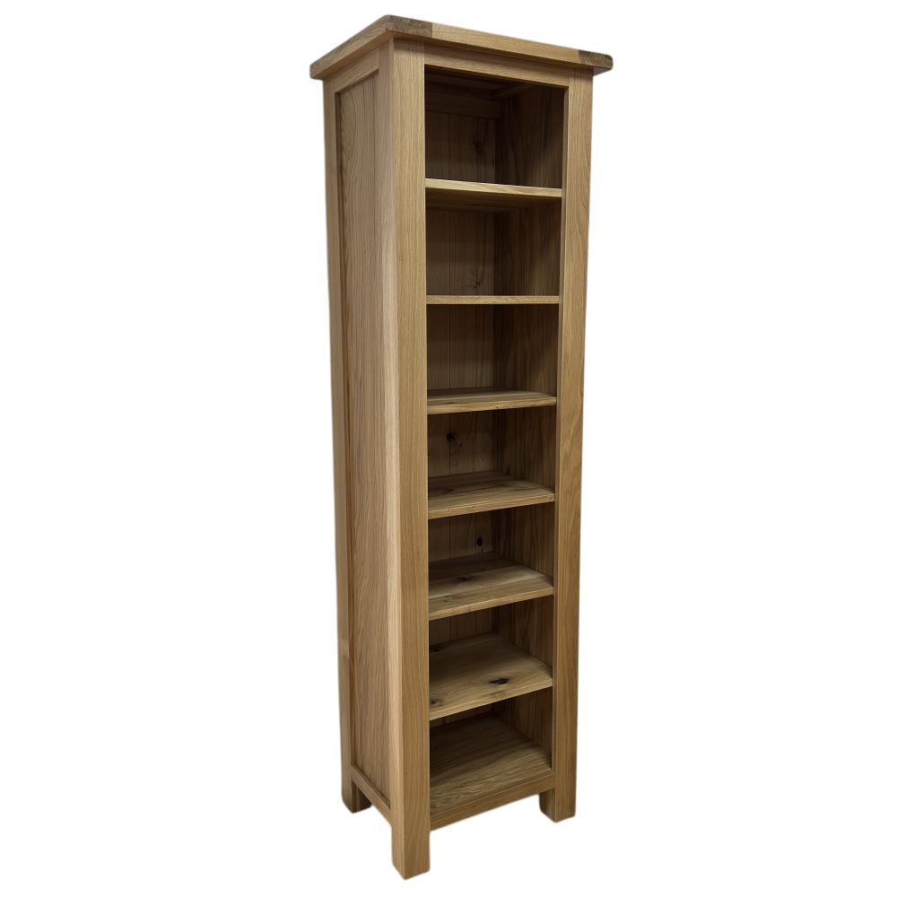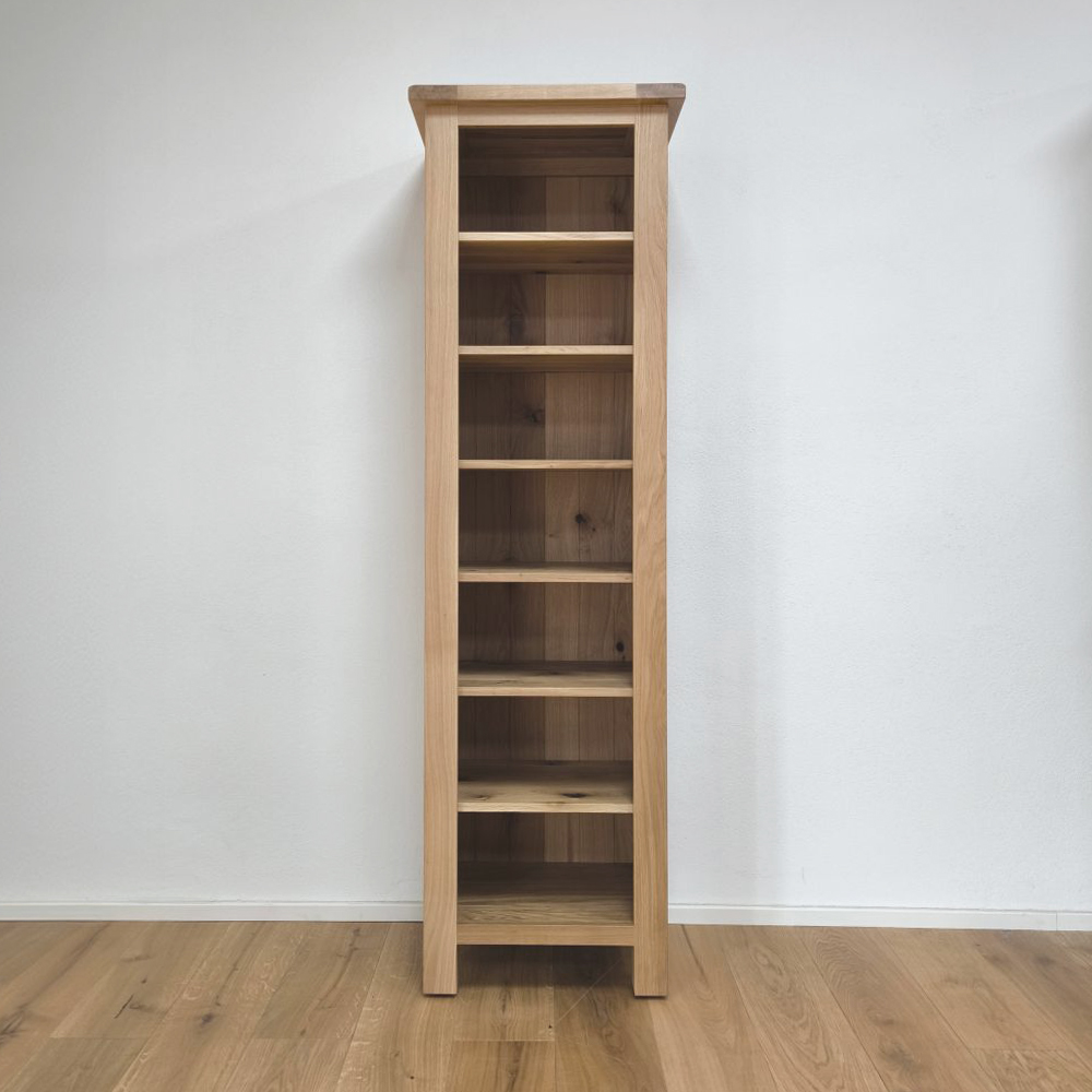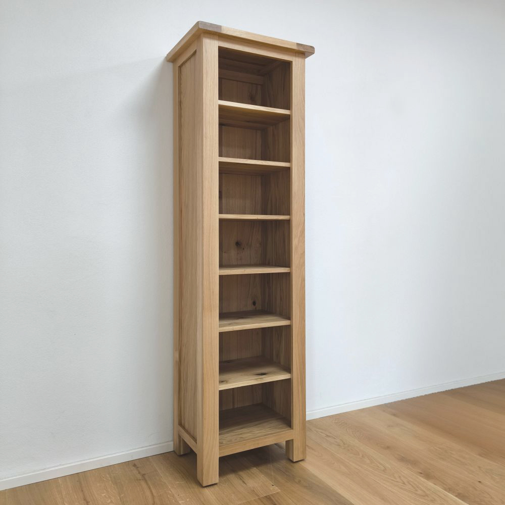 Úzka knižnica z masívu je perfektným riešením pre tých, ktorí hľadajú praktickosť, dizajn a kvalitu v jednom. Vďaka nadčasovej estetike a precíznemu spracovaniu bude skvelým doplnkom každej obývačky, pracovne či knižného kútika. Dubový masív zabezpečí dlhú životnosť a pevnosť, zatiaľ čo variabilné riešenie políc sa prispôsobí vašim individuálnym potrebám. Táto kniznica drevena je viac než len úložný priestor – je to kus poctivého nábytku s dušou.