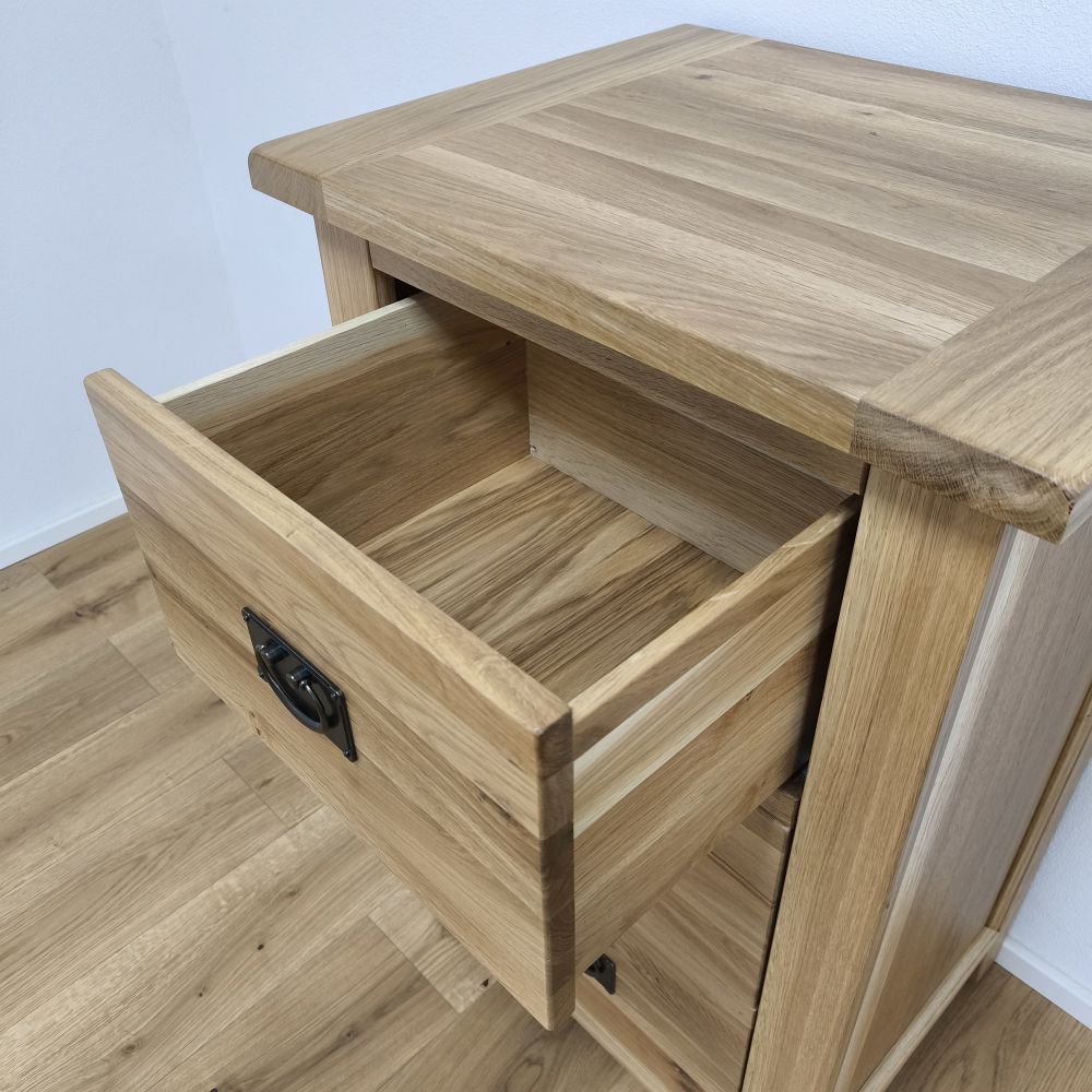 Drevená skrinka so zásuvkami je kvalitný kus nábytku, ktorý si nájde miesto v každej domácnosti. Masívne prevedenie zabezpečuje dlhodobú odolnosť a praktické zásuvky poskytujú dostatok priestoru na organizáciu. Úzka skrinka z dubu spĺňa nároky na funkčnosť, estetiku aj trvácnosť, preto je ideálnym riešením pre tých, ktorí hľadajú poctivý nábytok z masívu.