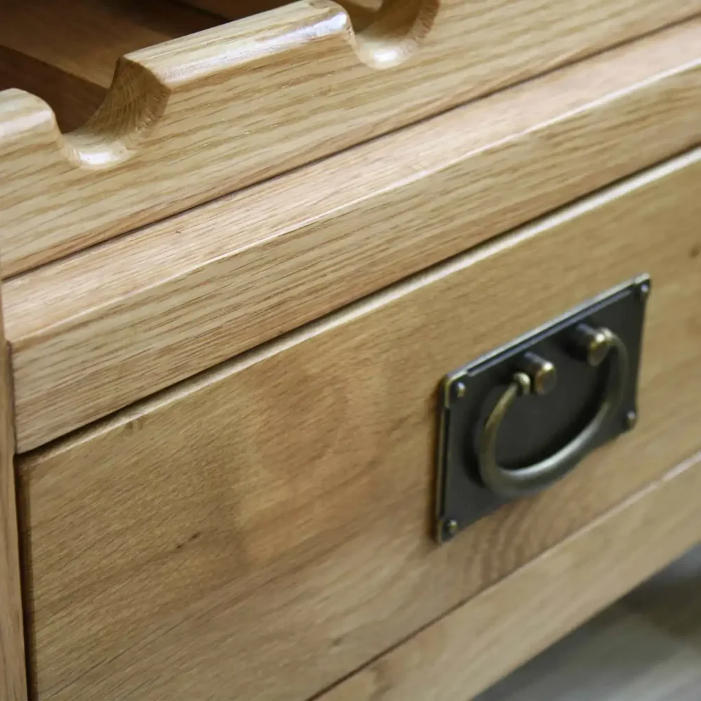 Úzka skrinka na víno so zásuvkou vďaka praktickým rozmerom vyhovie aj malej domácnosti. Drevená vínotéka urobí radosť vinárom a všetkým, ktorým učarovala lahodná chuť vína či iných destilátov. Neutrálnym, nadčasovým dizajnom anglického nábytkárstva sa drevený stojan na víno hodí do moderne i klasicky zariadených priestorov.