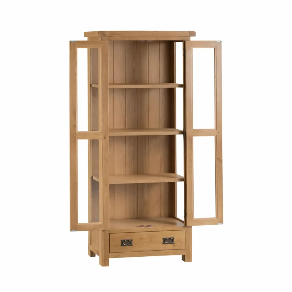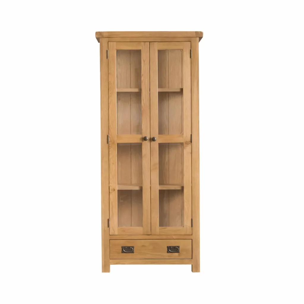 Presklená vitrína so zásuvkou, 80x35x180 cm