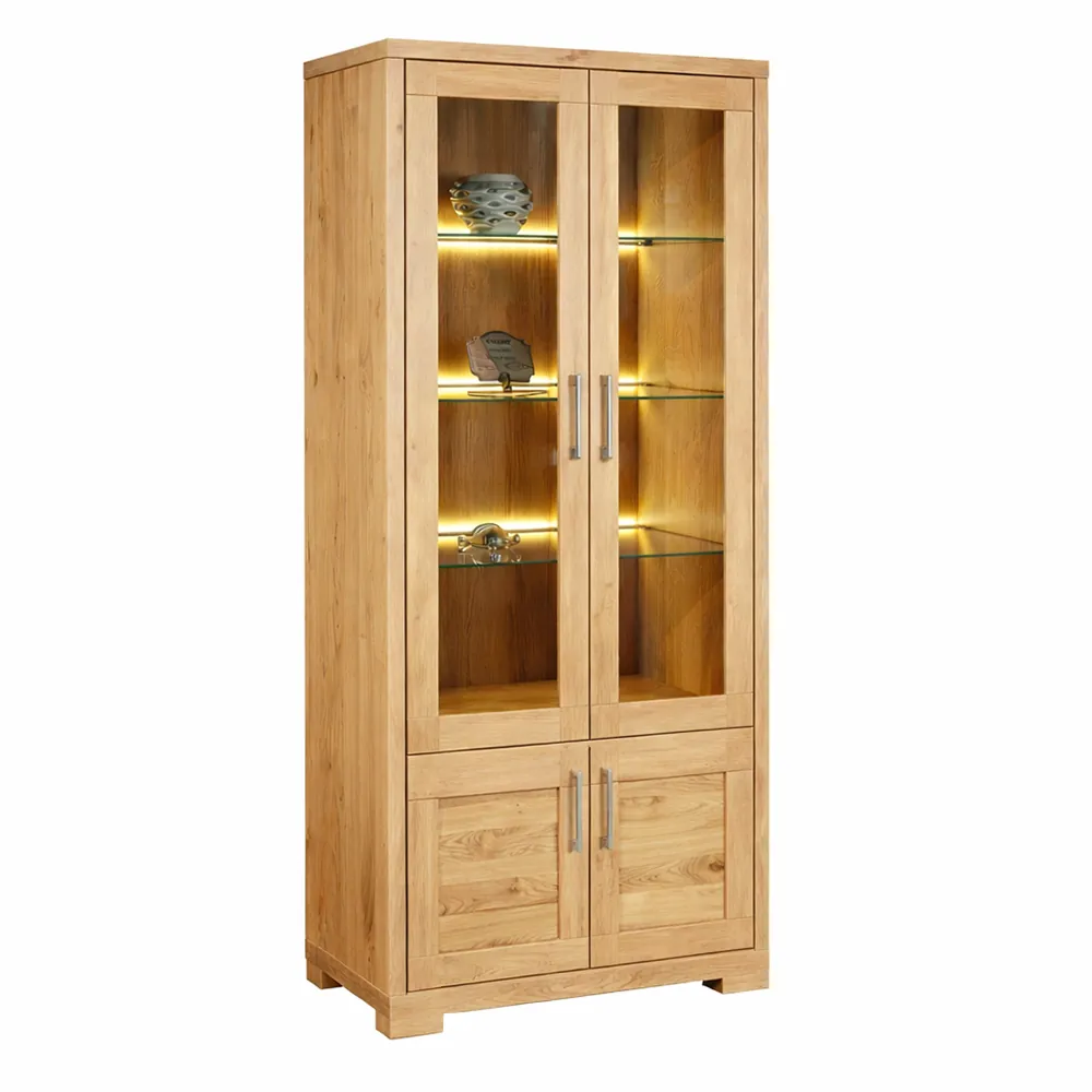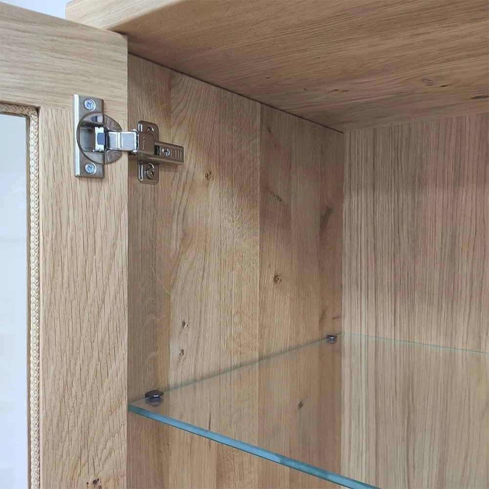 Dubová vitrína je ideálnym doplnkom pre každý interiér, kde sa spája elegancia s praktickosťou. Vďaka kvalitnému masívnemu dubovému drevu a preskleným dvierkam ponúka dokonalú kombináciu moderného dizajnu a klasického štýlu. Vitrína z masívu poskytuje dostatok priestoru na uloženie a vystavenie vašich obľúbených predmetov, ako sú poháre, dekoračné predmety, porcelán alebo knihy. Povrch dreva je upravený tak, aby zachoval svoju prirodzenú štruktúru a teplý vzhľad, čo zabezpečuje jedinečný estetický dojem. Presklená vitrína do obývačky sa vďaka tejto kvalite stáva dlhotrvajúcim a štýlovým doplnkom domova.