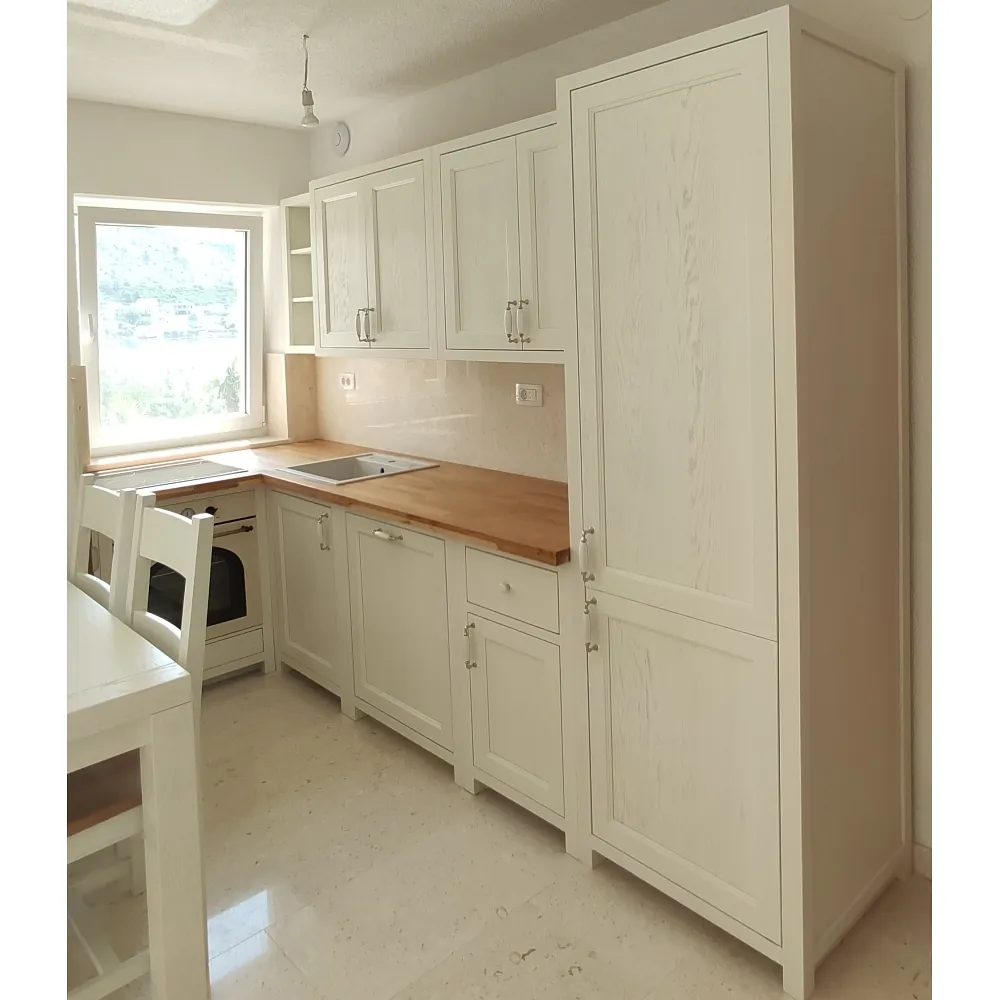Kompletné zariaďovanie štyroch apartmánov len 20m od pláže vyžadovalo výber kvalitného nábytku a aj odolnú povrchovú úpravu. Nakoľko si zákazník zamiloval biely prímorský štýl, celú kolekciu sme pripravili z kartáčovaného dubu v bielom akryle.  Zákazka obnášala biely nábytok do každej miestnosti vrátane kuchyne, jedálne, obývačky, kúpeľne aj spálni. Nábytok sme zákazníkovi dodali na dve etapy. Dodanie a montáže trvali spolu cca 14 dní.